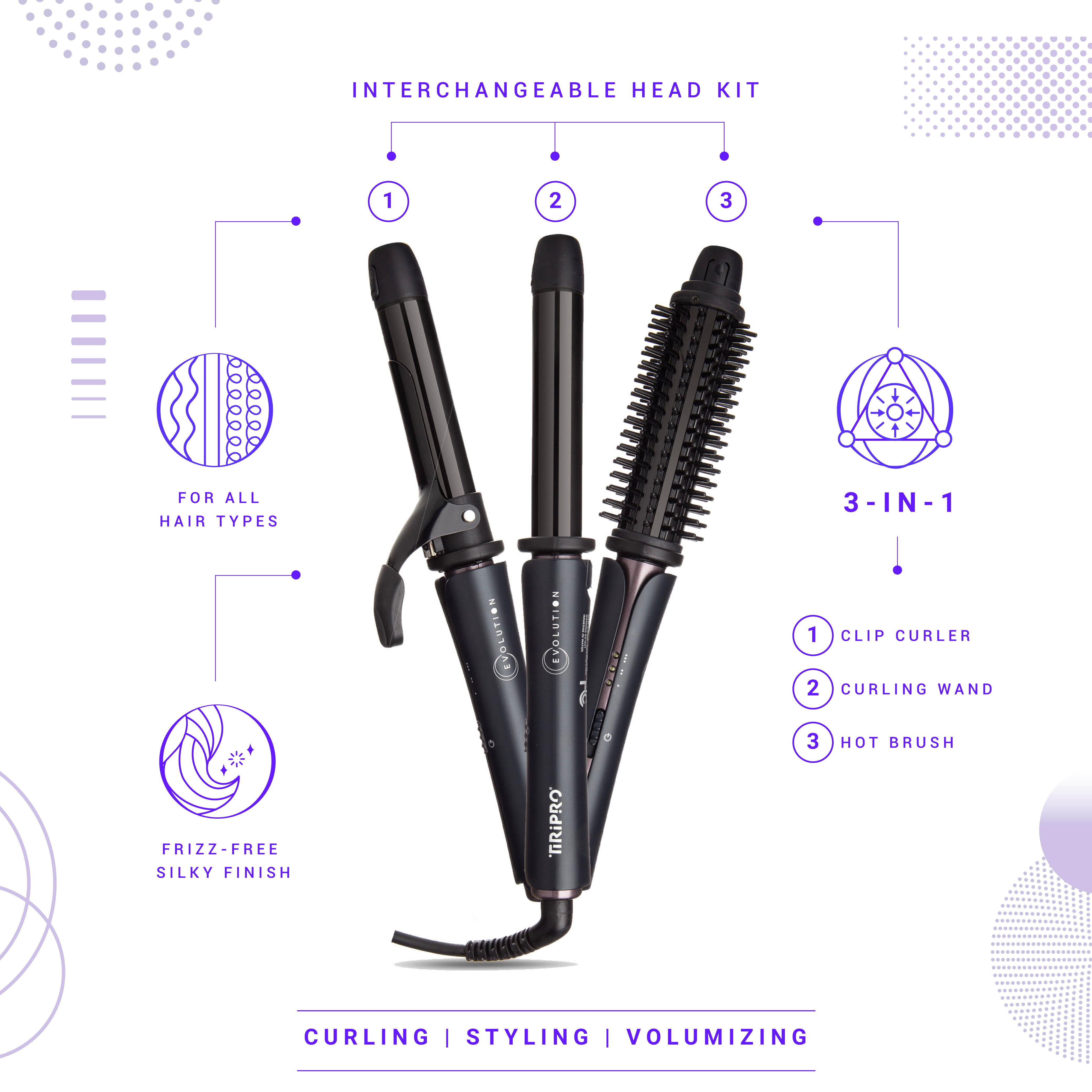 Switch between the precision of a classic clip curler, the natural elegance of a clipless wand, or the voluminous allure of a hot brush, depending on your mood.
