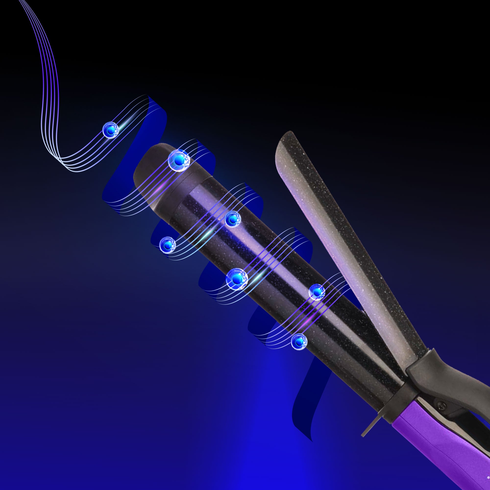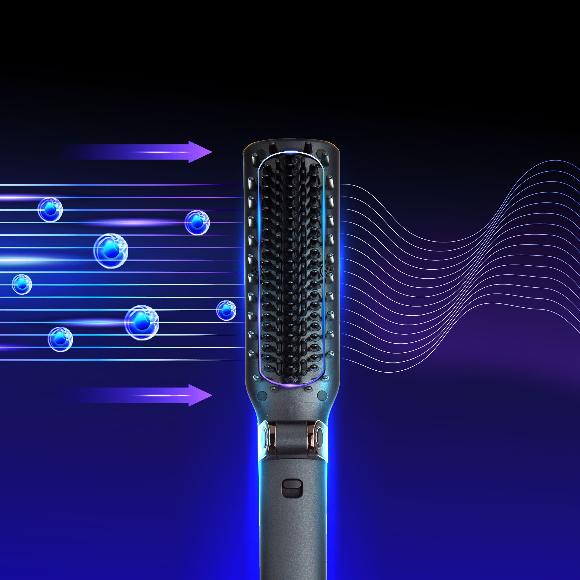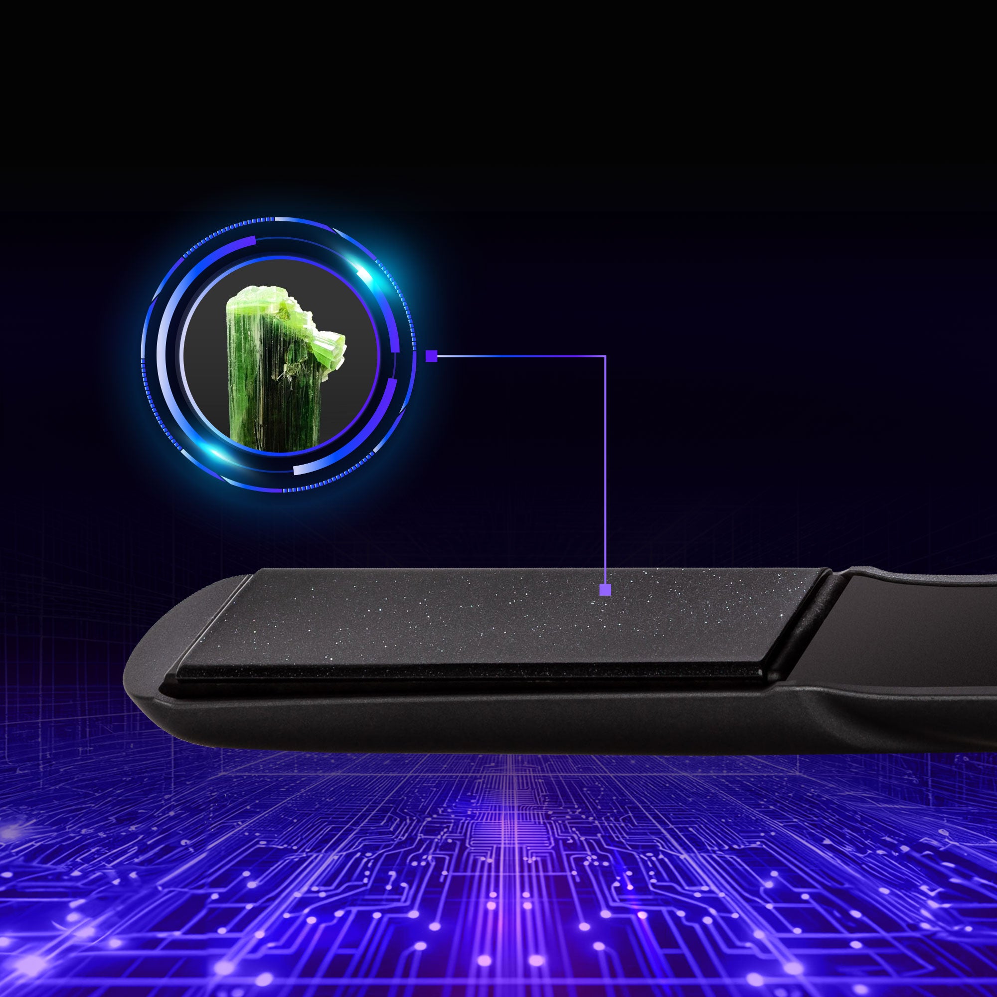 When activated, the Tourmaline gemstones emit negative ions that counteract positive ions in dry or damaged hair, resulting in silky and luminous results - while sealing vital moisture into hair to boost volume & shine.