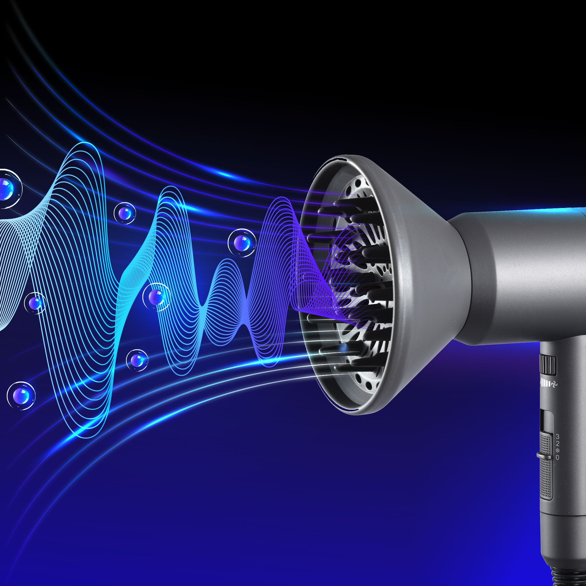 This innovative technology drastically cuts down on drying time needed, energy usage, and harmful heat exposure to hair & scalp.