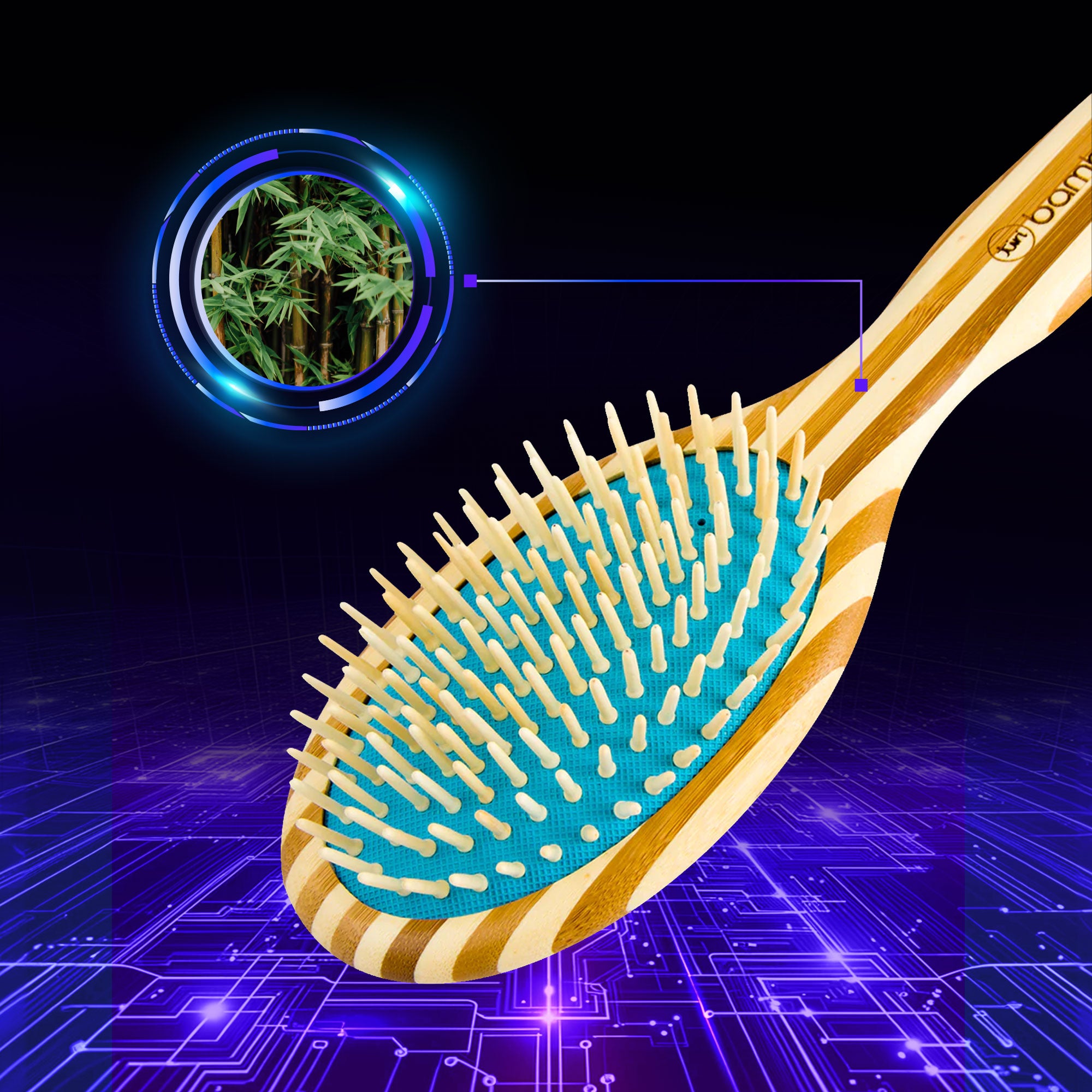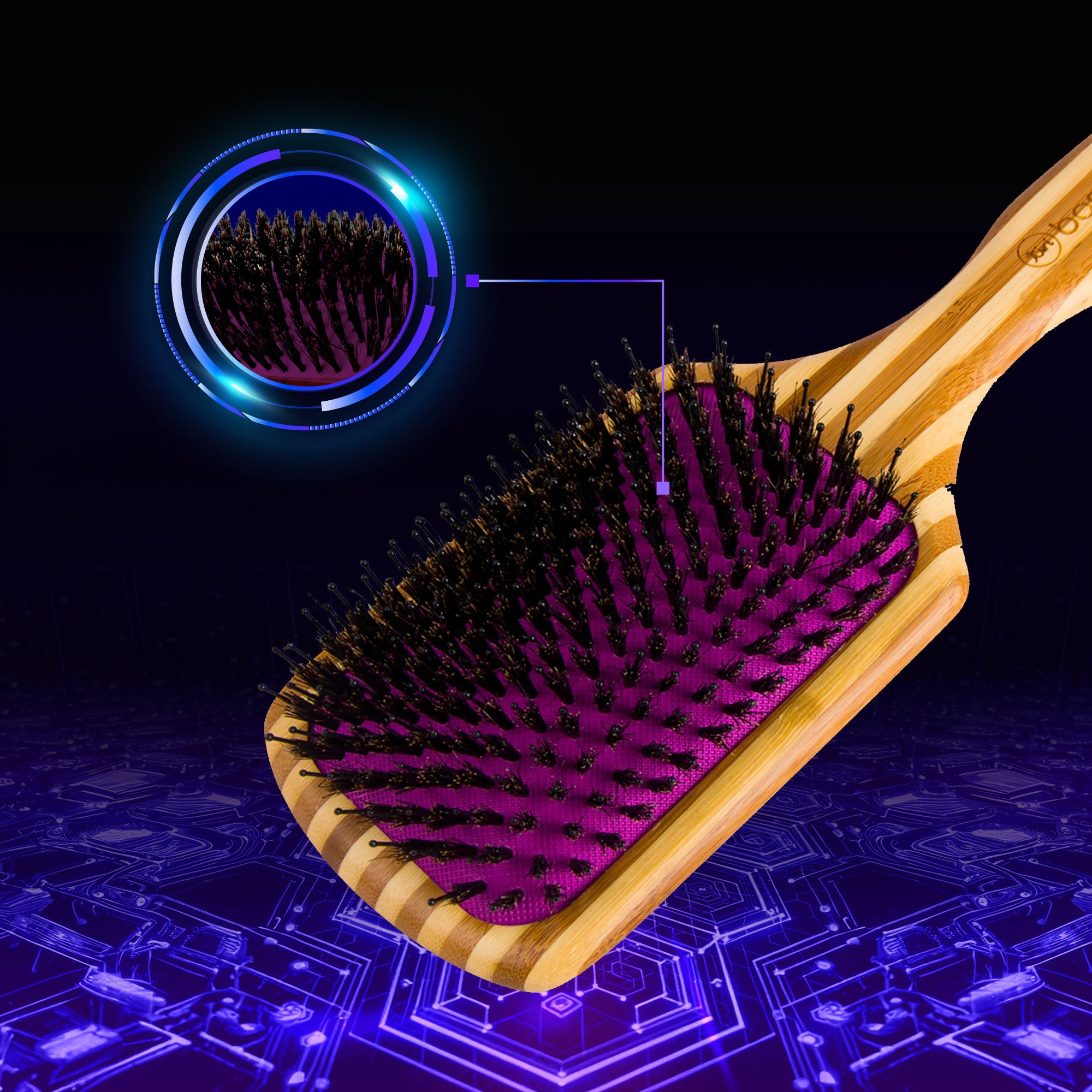 The unique structure of boar bristles soaks up the natural oils from the scalp, and lubricates individual strands as you brush your hair - restoring natural pH balance & significantly decreasing frizz.